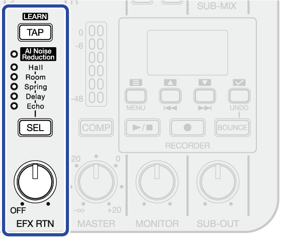 - 内蔵エフェクトの選択や、内蔵エフェクトのボリュームを調節します。